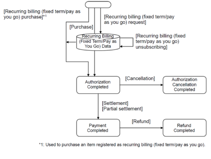Recurring billing processing (authorization) | The billing processing is performed by the Merchant * SBPS does not perform the billing processing. | ||