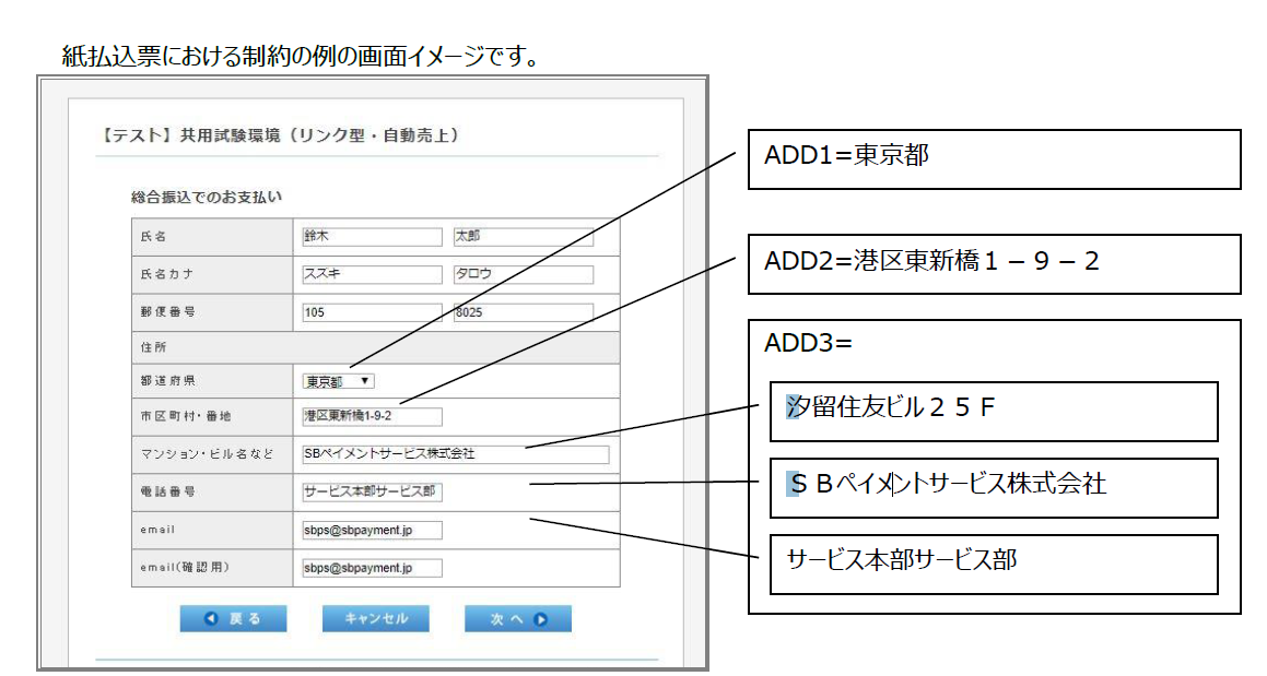 ※紙払込票の場合は、ADD1、ADD2、ADD3には半角文字は使用できません。